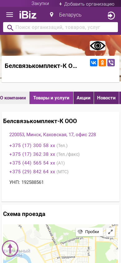 | Название / Заголовок | Белсвязькомплект-К ООО . 220053, Минск, , Каховская, 17, офис 228 |
