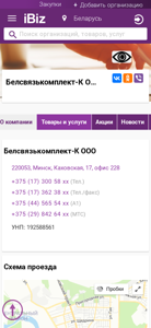 | AI-анализ | The web project "Belconnect.ibiz.by" is a business directory for Belarusian organizations and companies, specifically featuring BelSviazkompлект-K OOO located at 220053, Minisk, Kakhovskaya 17, office 228. The website provides contact information for this company including several phone numbers and a fax number. The organization is in the industry sectors of safety and security. The webpage also includes a map and directions to the office. The company's hours of operation are listed as Monday to Saturday from 9:00 AM to 6:00 PM with a lunch break from 1:00 PM to 1:40 PM. The website is rated and can be added to user's favorites. The domain is registered under "Ooo "Aibiz Media"". |