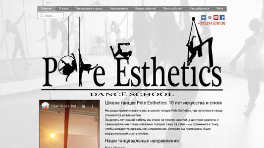 | AI-анализ | The portal pole-esthetics.by is a website dedicated to a dance school named Pole Esthetics. With ten years of experience, the school has evolved from a dance institution to a center of beauty and self-expression. The name of the school reflects its mission: to make every dance style taught an expressive and aesthetic one. The website offers various dance styles including pole dance for energy and grace, exotic pole dance for artistry and full immersion, aerial silks for aerial elegance and overcoming fear, aerial hoop for pliability in the air, aerial net for a dance on the boundary of three elements, aerial trapeze for height, adrenaline, and strength, and aerial straps for the intersection of flexibility and flight. Additionally, the website offers private lessons for individual attention and faster progress, and a program for a dance for a loved one. The website also provides |