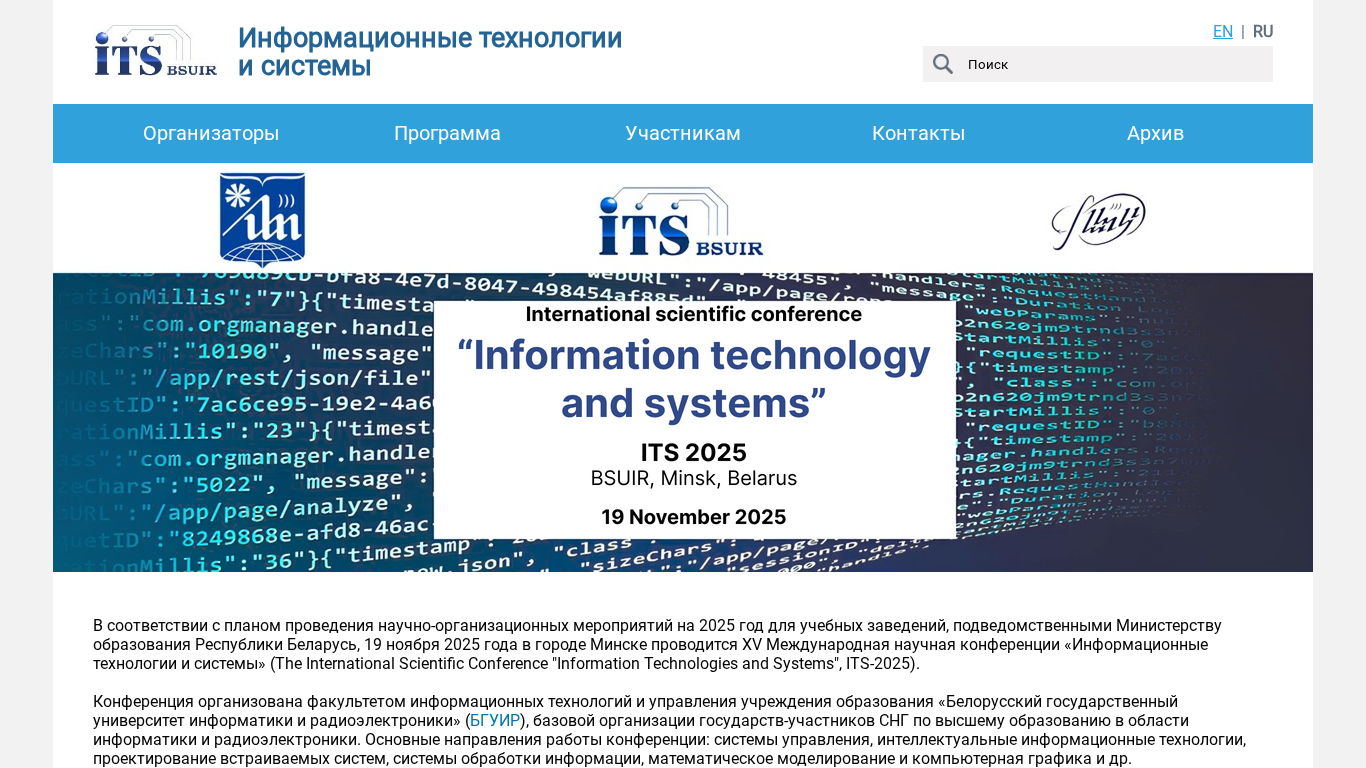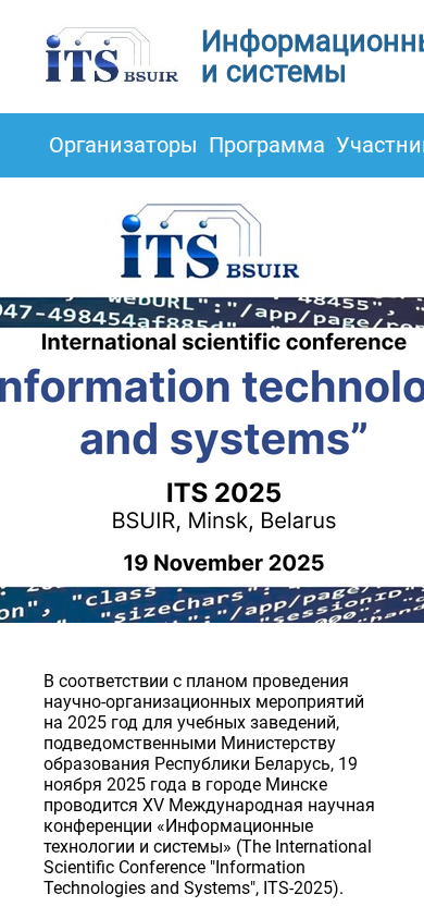 | AI-анализ | The portal its.bsuir.by is the official website for the International Scientific Conference "Information Technologies and Systems" (ITS-2025), which will take place on November 19, 2025, in Minsk, Belarus. Organized by the Faculty of Information Technologies and Management at Belarusian State University of Informatics and Radioelectronics (BSUIR), the conference is the base organization for member states of the CIS in the field of higher education in informatics and radioelectronics. The conference focuses on systems management, intellectual information technologies, embedded system design, information processing systems, mathematical modeling and computer graphics, and related topics. The plenary session will be held on November 19, at 10:00 AM, in auditorium 229, building 1, BSUIR. The |