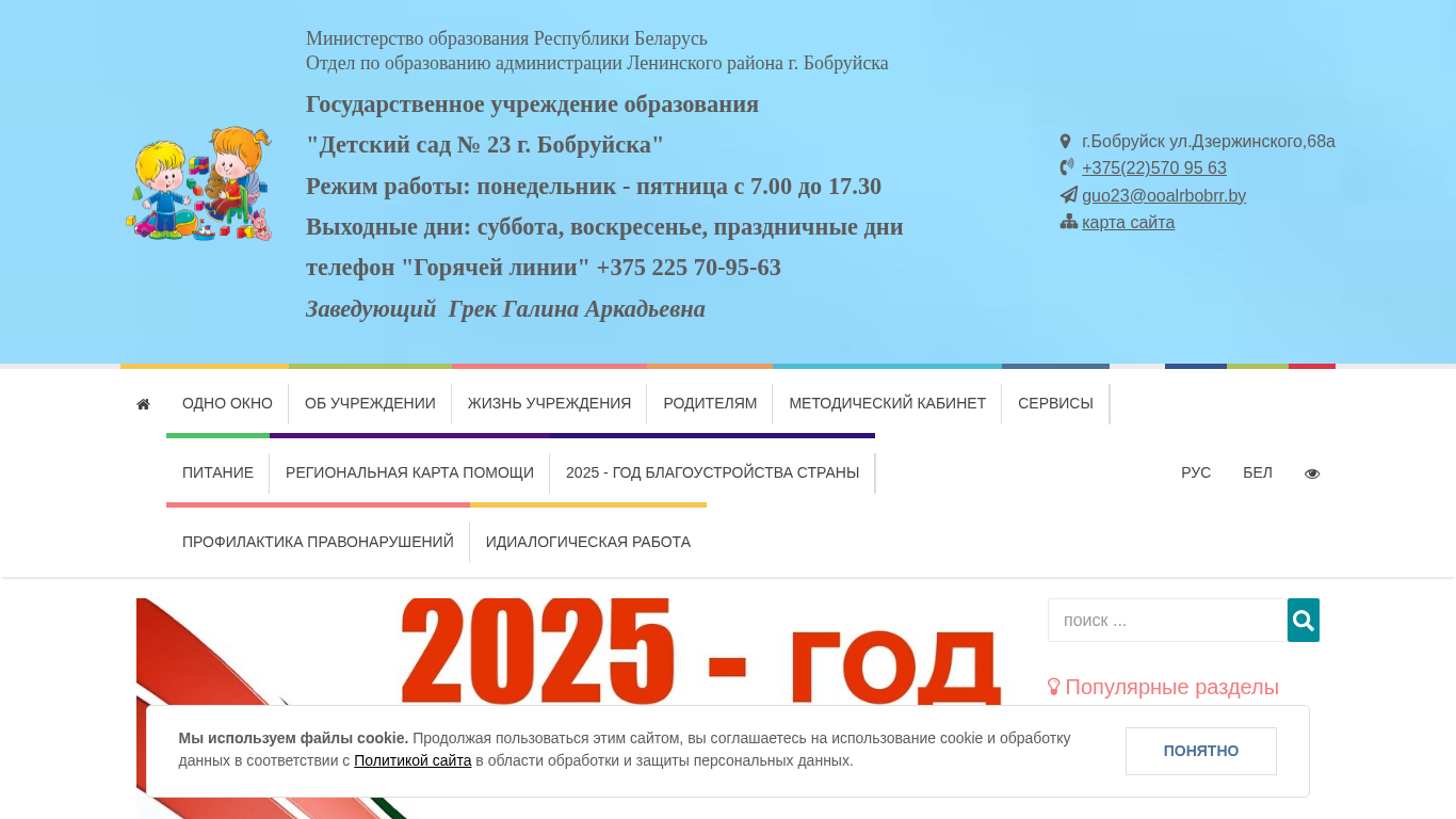 | Адрес | Формируем будущее вместе с молодежью!, подробнее », ‹, ›, © sad23.bobruisk.edu.by, 2025, 213826 г. Бобруйск, ул. Дзержинского, 68 |