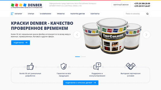 | AI-анализ | This website is the official representation of DENBER PAINTS & COATINGS ISRAEL LTD in the Republic of Belarus. The title of the website is 'Краски Денбер' (Denber Paints) and the description mentions various types of paints and coatings such as anti-static, protective, and marine paints. Keywords include 'краски' (paints), 'покрытия' (coatings), 'денбер', and 'системы' (systems). Top words are 'краски' (paints) with 39 occurrences, 'подробнее' (more details) with 17 occurrences, and 'покрытия' (coatings) with 9 occurrences. The website offers paints and coatings for various purposes including protective, marine, and industrial uses. It also mentions systems |