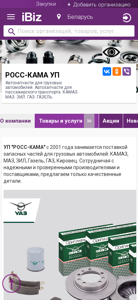 | AI-анализ | The website is an auto parts store named "РОСС-КАМА УП," offering parts for both cargo and passenger transport vehicles, including KAMAZ, МАЗ, ЗИЛ, GАЗ, and ГАЗЕЛЬ. The store is located in Grodno, Belarus, at Карского, 33. The website provides a scheme for reaching the company, contact phone numbers, and the company's address. The store specializes in supplying high-quality spare parts, collaborating with reliable and proven manufacturers and suppliers. The extensive product range is regularly updated and supplemented with new items. Customers can consult the sales managers not only on the purchasing process but also to help determine the right choice. The company has large storage facilities in Grodno, ensuring quick delivery of parts for cargo vehicles like ГАЗ, МАЗ, КаМАЗ, |