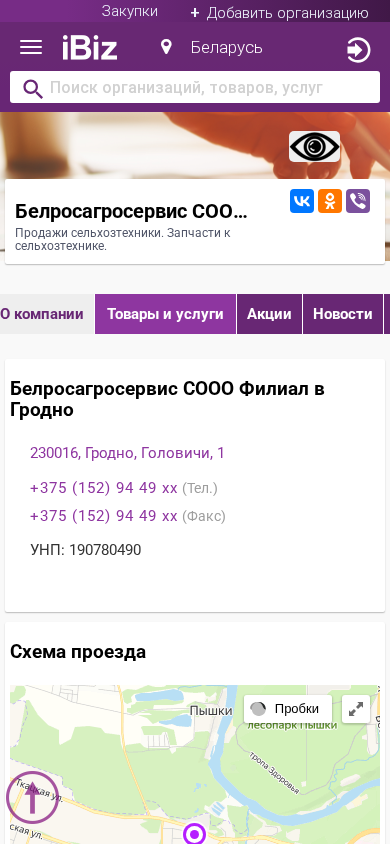 | Название / Заголовок | Белросагросервис COOO Филиал в Гродно - Продажи сельхозтехники. Запчасти к сельхозтехнике.. 230016, Гродно, , Головичи, 1 |