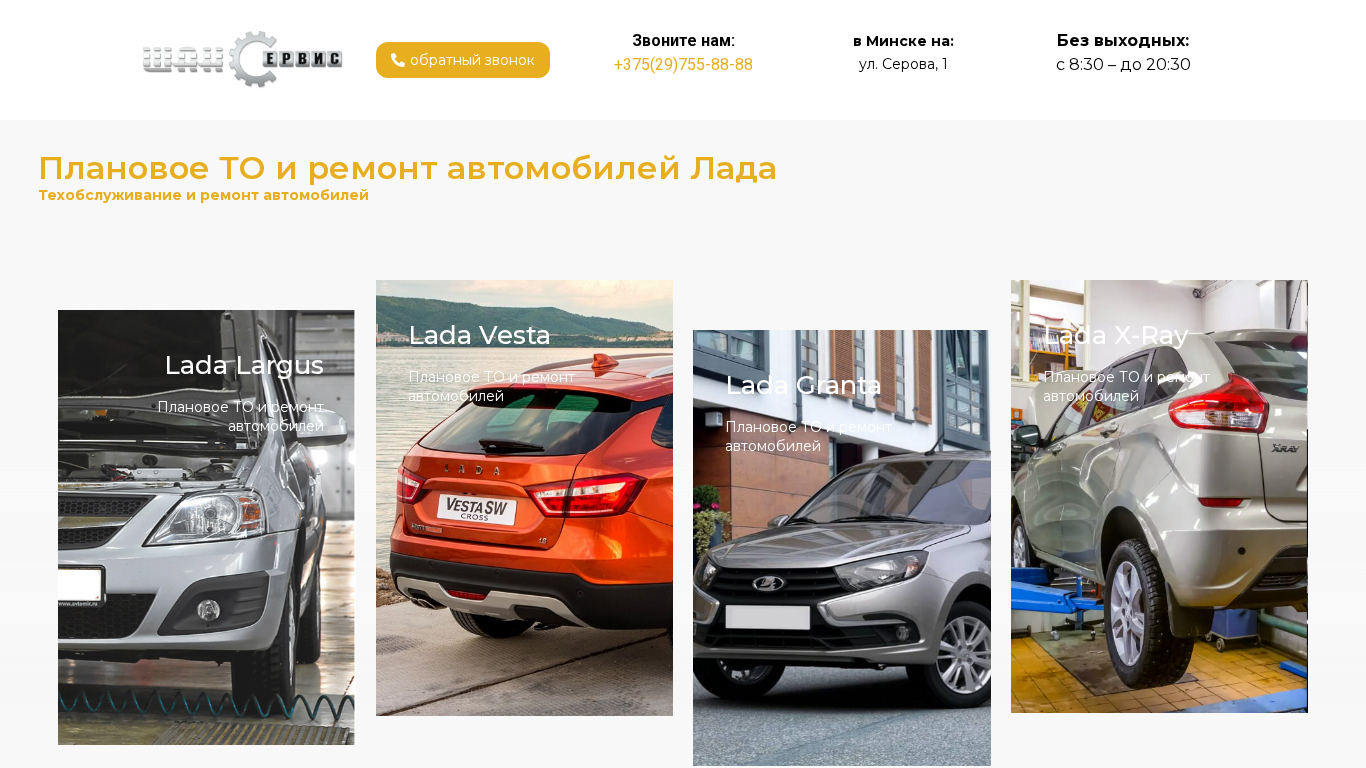 | SEO-описание | Ремонт лада гранта в Минске, ремонт лада веста в Минске, ремонт лада ларгус в Минске, ремонт лада иксрей в Минске. |