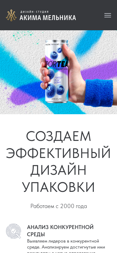| AI-анализ | This website is a design studio called "Акима Мельника" based in Minsk, Belarus. The website offers services for the design of packaging and labels. Keywords related to the business include design, packaging, label, branding, logo, illustration, product photography, and prepress preparation. The top words on the website are "дизайн" (design), "упаковки" (packaging), "идея" (idea), "стиль" (style), and "фирменный" (firm), among others. The studio's portfolio and contact information are also featured. The website provides analysis and concept development services for brands, with a focus on identifying market leaders and their successful strategies to inform the design concept for a client's brand. The studio creates effective designs for packaging and labels, offering services since 2000. They analyze the competitive market to |