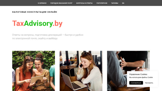 | AI-анализ | The website Tax Advisory .by offers online tax consulting services in Minsk and Belarus. Clients can receive answers to their tax-related questions, have their declarations prepared, and receive explanations of tax legislation in written form, along with further clarification via Skype. The website also provides tax consultation for specific situations, offering official written opinions from tax consultants based on the provided documents and subsequent clarification via Skype. Tax declarations and other tax documents, such as those related to personal income tax, the single tax, tax on income from entrepreneurial activities, and others, can be prepared. The consultants, who have passed the attestation exam in the Ministry of Taxes and Fees of the Republic of Belarus, have significant experience, regularly undergo qualification enhancement, and are members of the Chamber of Tax Consultants. The consultants' professional liability is insured, with fines and |