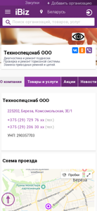 AI-анализ | The website is a business organization based in Bereza, Belarus, with the address Комсомольская, 3Е/1. It offers services related to automotive diagnostics and repair, specifically focusing on suspension systems, brake systems, and the replacement of drive belts and chains. Users can contact the company through the provided phone numbers: +375 (29) 729 76 xx and +375 (29) 206 30 xx. The company's Unified State Registration Number is 290357703. The website also includes a map and contact information for visitors. The business hours are from 08:00 to 17:00, Monday through Friday, with a lunch break from 12:00 to 13:00. The website falls under the |