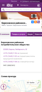 | Название / Заголовок | Березовское районное потребительское общество - РАЙПО. Торговля. Общественно питание. . 225203, Береза, , Любарского, 32 |