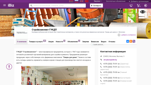 | AI-анализ | --- The website is for Stroykompлект GUKDP, a company based in Mogilev, Belarus, dealing with the wholesale and retail sale of building materials, as well as a network of retail stores under the brand "Товары для дома". The company's address is listed as Мытная, 5, 224003, Могилев. The website provides details on the organization, its products, and services, including cement, gravel, lime, dry building mixes, brick, roofing materials, DVP and DSP panels, paint and lacquer materials, linoleum, mesh, and various gaskets and sealants. Additionally, the company offers services such as paint mixing in-store using modern German equipment. Delivery services are provided using Maz trucks of various sizes, and the company also offers warehousing and loading/ |