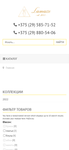 | AI-анализ | The website is a Belarusian e-commerce platform for the brand 'Lamago' offering clothing and accessories. The homepage features a 'Catalog' and 'Brand' section, with the 'Collections 2022' being the main focus. Users can filter products by 'Category' (clothing items such as pants, dresses, shirts, skirts, jackets, sweaters, coats, and suits), 'Size', and 'Location' (cities where the brand has physical stores: Minsk, Vitsebsk, Grodno, and Lida). The website provides contacts for inquiries and offers a blog and an Instagram account for further engagement. The brand is a Belarusian manufacturing company named 'Lamago' (UNN 590645653). The website offers options for placing orders, with details to be confirmed by a manager upon |