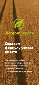 | SEO-описание | ООО «БиопромСервис» - с 2010 года успешно занимается продвижением на рынке кормов, кормовых добавок для животных и птиц, зерновых, жмыха, масла и тд. |