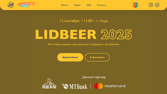 | SEO-описание | Присоединяйтесь к крупнейшему фестивалю в Лиде – LIDBEER 2025! Музыка, пиво, развлечения и незабываемая атмосфера ждут вас этой осенью. |