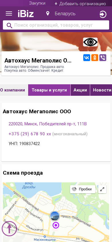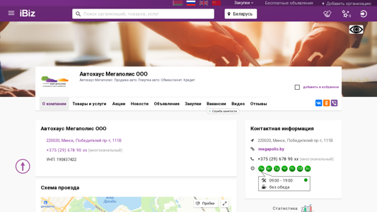 | Название / Заголовок | Автохаус Мегаполис ООО - Автохаус Мегаполис. Продажа авто. Покупка авто. Обмен/зачет. Кредит.. 220020, Минск, , Победителей пр-т, 111В |