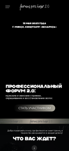 | AI-анализ | This website is a professional hair forum named "Professional Forum – 2025." It offers client services, haircuts, styling, and keratin treatments. The title and description of the website include keywords related to hair, forum, professional, and various program-related terms. The top words on the website are "hair," "forum," "pro," "волос," "пакет," and "стрижки," among others. The website contains information about a hair forum event taking place on May 15, 2025, in Minsk at the Belarus cinema theater. Visitors can register for the event by filling out a form with their personal information. Two participation packages, "Exact Line" and "Master's Hand," are available for selection, and the website includes contact information for the organizer. The website also mentions that it follows |
