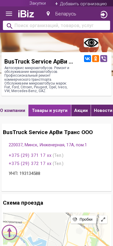 Название / Заголовок | BusTruck Service АрВи Транс ООО - Автосервис микроавтобусов. Ремонт и обслуживание микроавтобусов. Профессиональный ремонт коммерческого транстпорта. Обслуживаем микроавтобусы марок: Fiat, Ford, Citroen, Peugeot, Opel, Iveco, VW, Mercedes-Benz, GAZ.. 220037, Минск, , Инженерная, 17А, пом.1 |