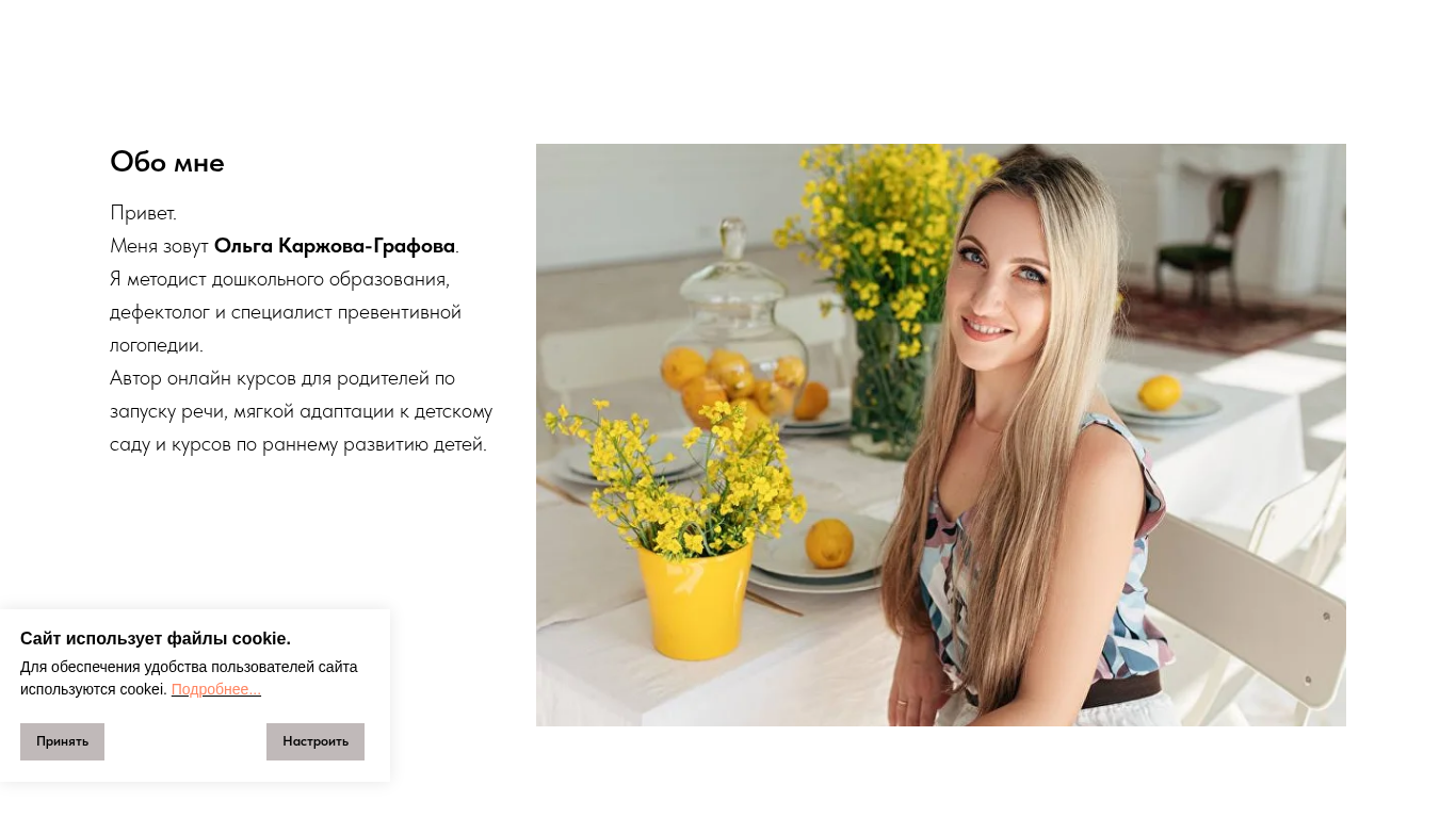| AI-анализ | The portal govorushki.by is an educational website created by Olga Karzhova-Grafova, a methodologist for preschool education, a defectorologist, and a specialist in preventive logopedics. The author offers online courses for parents on initiating speech, soft adaptation to kindergarten, and early child development. The first-level course "Starting Speech with Mom" starts on November 10, 2025. It is designed for children who do not understand speech or only understand it at a basic level, do not speak, or speak very little (less than 5 words in a year, less than 30 words in 1.3 years, or less than 90 words in 1.8 years). The course includes a neuropsychological approach and 160 play-based sessions and 111 video lessons. The second- |