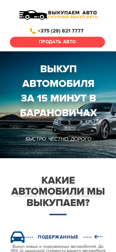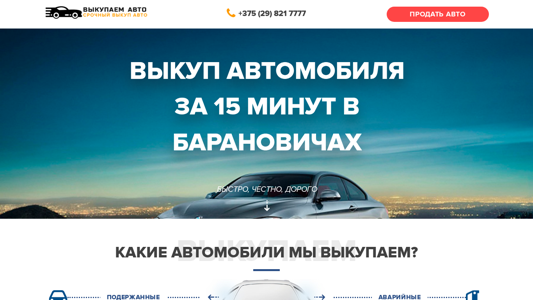 | SEO-описание | Скупка авто по высоким ценам в Барановичах. Наша компания предоставляет услугу выкупа автомобиля в любом состоянии: выкуп битых, кредитных и неисправных автомобилей в Барановичах |