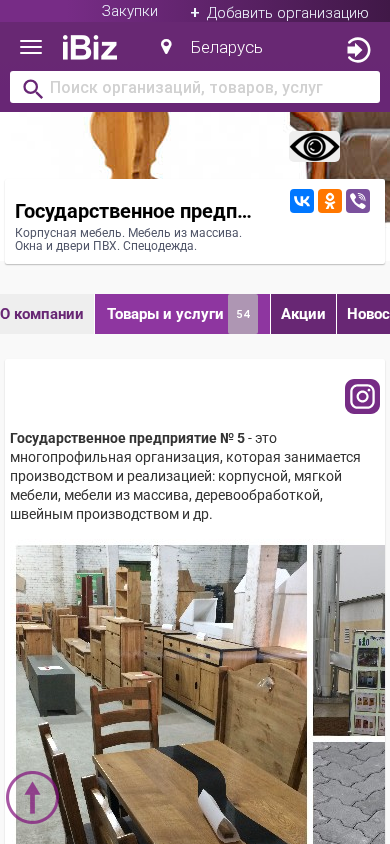 | AI-анализ | The web project <GOSTATECORP5.IBIZ.BY> is a Belarusian multi-profile organization specialized in the production and sales of various products, including: furniture made of wood, furniture from wood and metal, soft furniture, corporate furniture, PVC windows and doors, work clothing, door frames, and reinforced concrete products. The organization has the necessary production facilities, skilled labor force, and modern high-tech equipment. The State Enterprise № 5 has implemented the quality management system for the production of furniture, PVC windows and doors according to the requirements of the STB ISO 9001-2015 standard. The enterprise offers and sells: furniture made of wood, products with metal elements, soft furniture, corporate furniture, PVC windows, PVC doors, work clothing, door frames, and reinforced concrete products. The organization deals with natural materials, high quality, and a |