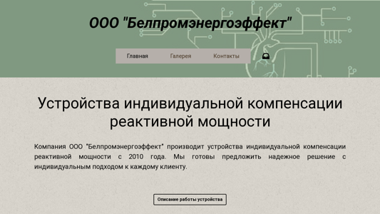 | SEO-описание | Комания ООО "Белпромэнергоэффект" компенсация реактивной мощности. Индивидуальный подход к клиентам. |
