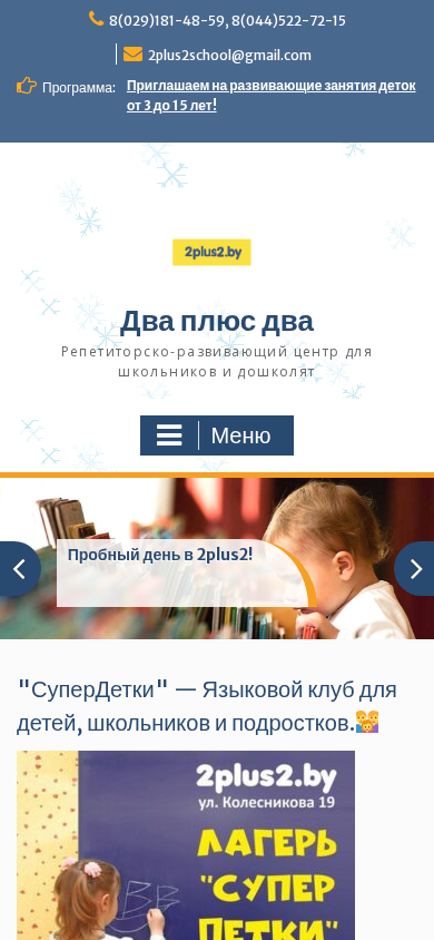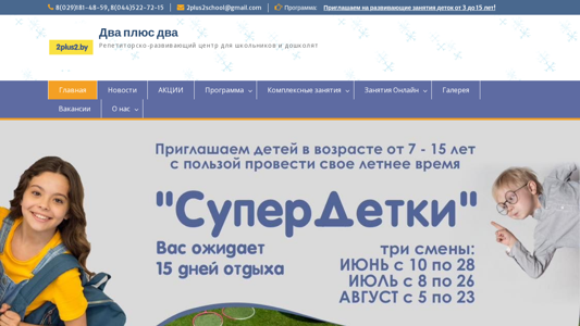 | SEO-описание | Репетиторско-развивающий центр "Два плюс два". Скорочтение, каллиграфия, математика, подготовка детей к школе, логопед, психолог, творчество |