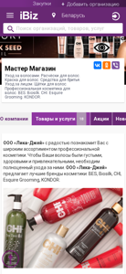 | AI-анализ | The web project "Master Magazin" is a retail store specializing in hair care products, combs, hair dyes, shaving supplies, and facial care items. It offers a range of professional cosmetics from brands such as BES, Biosilk, CHI, Esquire Grooming, and KONDOR. The store is located in Minsk, Belarus, at the address Кропоткина, 84. The website provides information on the company, its products and services, and includes sections for add-ons, free classified ads, and a shopping cart. The top keywords associated with the site are "волос" (hair), "косметика" (cosmetics), "услуги" (services), and "лика-джей" (Lika-Jay). |