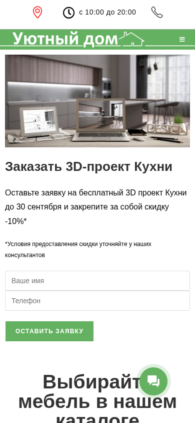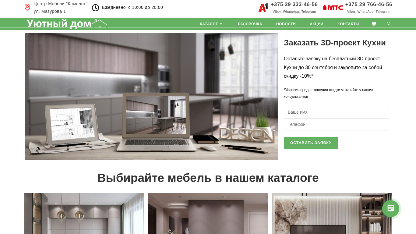 | AI-анализ | This website is a furniture salon named "Uютный дом" (Cozy Home) located in Minsk, Belarus. The website offers a wide range of furniture for various rooms including kitchens, living rooms, bedrooms, children's rooms, bathrooms, and wardrobes. Customers can browse the catalog for different types of furniture and place orders online or visit the physical store. The salon also provides a free 3D project service for kitchens, allowing customers to visualize their future purchase at home. The website includes sections for contact information, news, and financing options. The company has been in business since 2006 and has completed over 4000 projects. Furniture can be purchased with a full package of documents, including a technical pasport and electrical schematics. The company also provides delivery, installation, and a 5-year warranty on all |