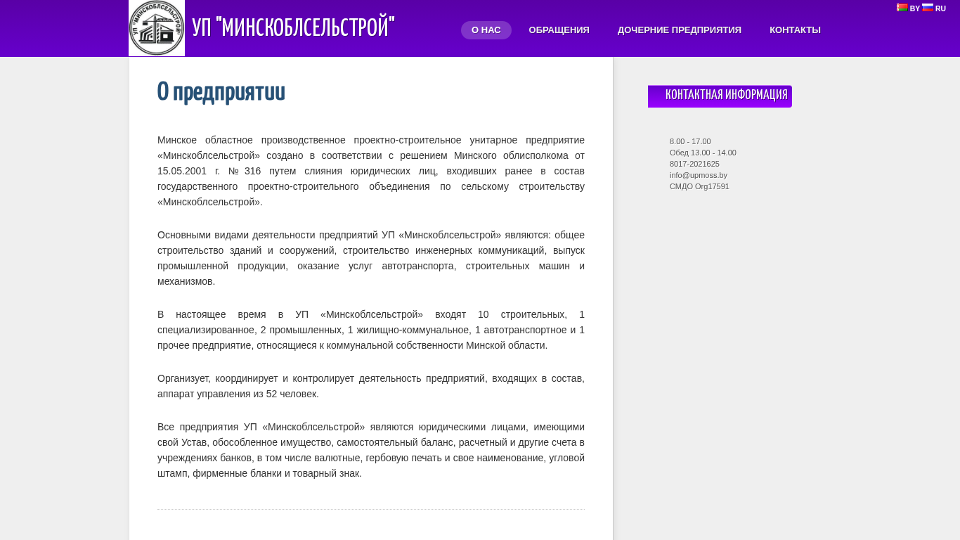 Название / ЗаголовокО предприятии - УП "Минскоблсельстрой"