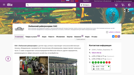 | AI-анализ | The web project "Lubansky rayagroservis OAO" is a manufacturing, service, and repair company for agricultural machinery and equipment (including mowers, harrows, and processing equipment for soil). They also produce spare parts and construct portable and vacuum milking stations, as well as livestock farm equipment. The company is located in 223812, Luban, Borovika, 15. |