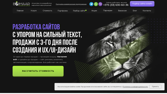 | AI-анализ | The website BOMАAR is a full-service website development agency offering text, UX/UI design, SEO, and marketing services. The agency aims to create sites that generate leads starting from the third day, and users can request a cost estimate for their project. BOMАAR operates in the .BY domain. Keywords related to website development, including "site creation," "landing," and "order a site," are frequently used on the site. The site's top words indicate a focus on forms, obtaining quotes, and client acquisition, with the phrase "byn" appearing frequently, likely referencing the .BY domain. The site includes sections for portfolio, pricing, partnerships, vacancies, blog, and contacts. Services offered include website audit, design, development, and marketing. Users can request a free site audit. BOMАAR operates as a marketing solutions agency, analyzing a site's effectiveness in |