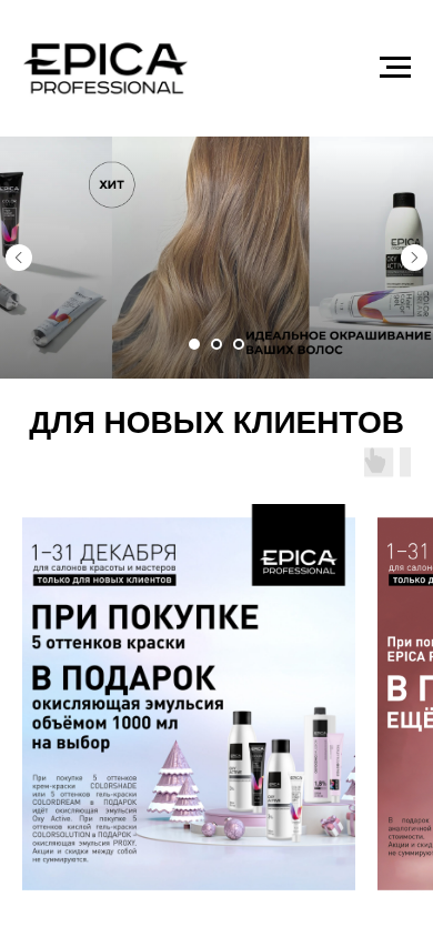 | AI-анализ | language: ru The web project "Epica Professional" is a cosmetics brand website that emerged in 2018 from the collaborative effort of Russian and Italian chemists. The site offers professionals in the hairdressing industry an easy means to achieve their desired looks, while clients can enjoy the results. The color palette consists of 164 base shades, designed for creative expression and luxurious transformations. The hair dyes contain natural oils and panthenol, allowing for quick absorption into the hair and nourishing effects. They deliver a deep, long-lasting color, soften the hair texture, and add a luxurious shine. The dyes are easily applied due to their elastic consistency, ensuring even coverage and a long-lasting result. The site also provides information about "Evercosmetics" LLC, its contacts, promotions, and professional care. The |