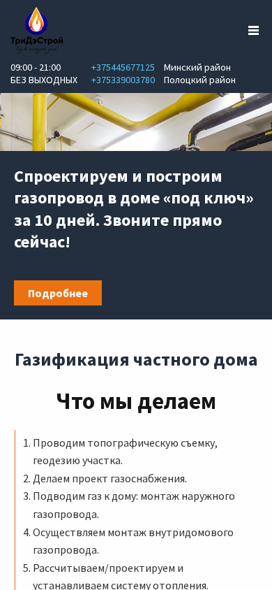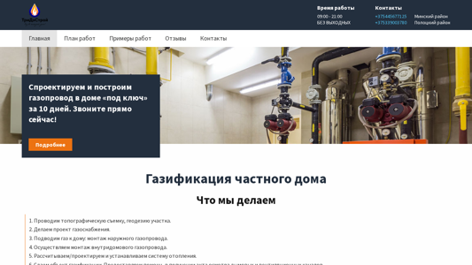 | Название / Заголовок | Спроектируем и построим газопровод в доме «под ключ» за 10 дней. Звоните прямо сейчас! - Газификация и отопление частного дома в Минском районе под ключ |