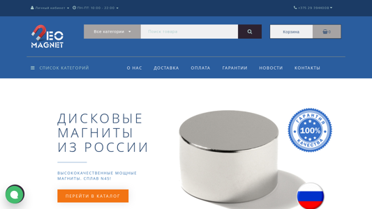 | AI-анализ | --- This website, NeoMagnet.by, offers a wide range of neodymium magnets for sale, both in bulk and retail, with delivery available throughout Belarus. The company guarantees high-quality Russian-made magnets. The site includes a personal cabinet with account registration and authorization, product information, settings, and contact information. Categories for neodymium magnets, search magnets, magnetic fittings, and magnetic separators are listed. The site offers a variety of neodymium disks, prismatic magnets, souvenir magnets, magnetic fittings with holes, and magnetic separators. Product information includes details on guarantees, delivery, and the company. The site also features a blog with news and a contact list. The contact information includes a phone number for Belarus, Minsk, Dzerzhinsky Prospekt 11, and |