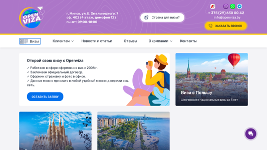 | AI-анализ | The website is an agency offering assistance with obtaining Schengen visas in Minsk and Belarus. The agency helps individuals and businesses apply for both single-entry and multiple-entry Schengen visas. The agency's promise is to help customers obtain visas to any country in the world. The website provides information on various types of visas, the process of obtaining them, and offers additional services such as document registration, hotel booking, and ticket booking. The agency has an office in Minsk, and customers can contact them by phone or email to schedule an appointment. The website also includes a FAQ section, client testimonials, and information about the company and its team. The top keywords on the website include 'visa', 'Schengen visa', 'Openviza', and 'visa support'. The website is located at openviza.by. |
