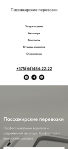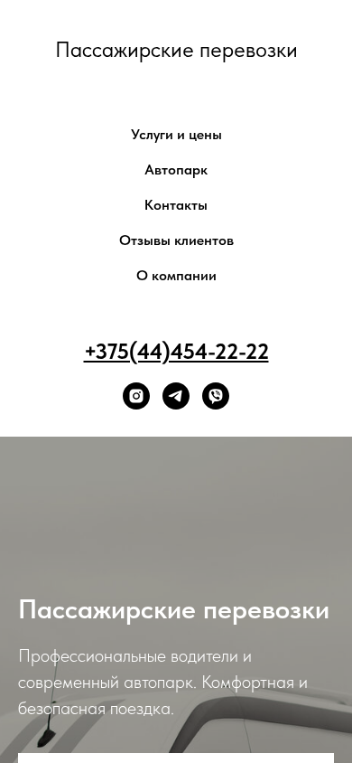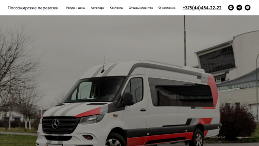 | AI-анализ | This online resource, titled "Пассажирские перевозки пинск" (Passenger Transportations Pinsk), offers various services and prices for passenger transportation. The website includes information about the company's auto park and contacts. The main sections of the site are "Услуги и цены" (Services and Prices), "О компании" (About Company), and "Контакты" (Contacts). The site provides professional transport solutions with comfortable, safe, and convenient options such as transfers within Belarus, international transfers, and transportation for events and holidays. Prices for transfers within Belarus are 2.5 rubles per kilometer, and international transfers cost 3 rubles per kilometer. The website also mentions the possibility of renting a bus for events and parties. The company's fleet consists of modern and comfortable vehicles. Users |