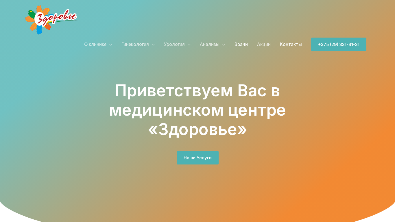 | AI-анализ | The website is a medical center named "Здоровье" (Health in English). It offers services in three areas: laboratory diagnostics, gynecology, and urology. The center has an in-house PCR laboratory, considered the best in Belarus. They have been taking care of people's health since 2007. The contact number for the center is (029) 331-41-31. The website provides information on various health issues, including tests for HIV, syphilis, chlamydia, candidiasis, trichomoniasis, and ureaplasmosis, among others. It also offers recommendations for women's health check-ups and useful articles on gynecology and urology. The menu includes sections for lab tests, gynecology, and urology, with detailed information on each test |