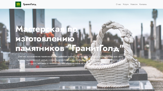 | AI-анализ | The portal "ГранитГолд" (granitgold.by) is a website dedicated to the production and creation of granite memorials and gravestones. With over 15 years of experience, the company specializes in providing individualized solutions for clients, offering a wide range of granite types and colors to create unique memorial designs. In addition to memorials, the company also provides services for the production of granite ogras, decorative elements, photo medallions, and portraits. The site includes a section for news and contacts, as well as information about the company's production process and the different types of granite available. The website is currently in production and was last updated on January 22, 2022. |
