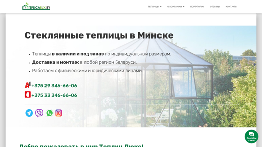 | AI-анализ | --- This website is for a glass greenhouse company in Minsk, Belarus, offering delivery and installation services. They have a wide selection of glass greenhouses available throughout Belarus, with their own production. The website provides information on various models such as Silver, Gold, and all-season greenhouses. The company offers high-quality products with a professional service, including support from consultants throughout the manufacturing, delivery, and installation process. The website includes a catalog of the Silver, Gold, and all-season greenhouses, as well as frequently asked questions. The contact information for the company is also provided, including phone numbers for Belarusian and international calls. |
