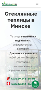 | SEO-описание | Широкий выбор стеклянных теплиц, парников в Минске и по всей Беларуси. Собственное производство. Доставка и установка под ключ. |