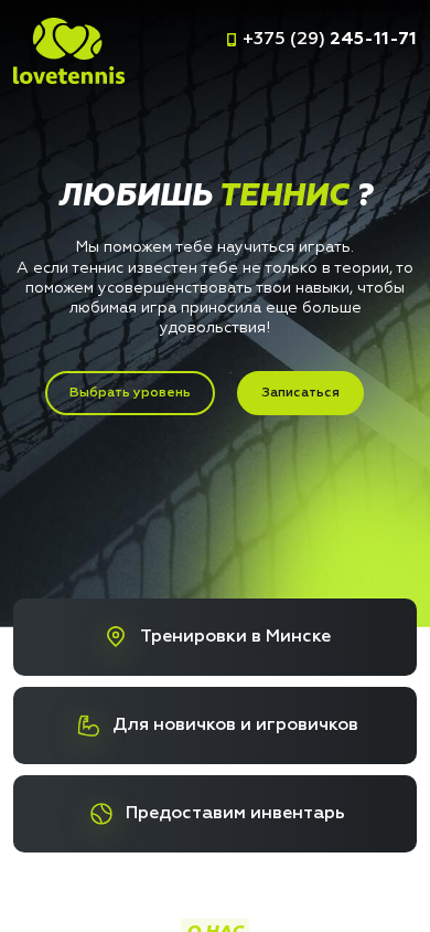 | AI-анализ | The website 'Lovetennis.by' is dedicated to tennis training in Minsk, Belarus. It offers both individual and group lessons for novices and advanced players. The website also provides tennis equipment. |