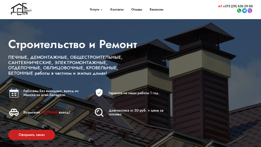 | AI-анализ | This online resource, DOMGARANT.BY, offers services related to fireplaces, construction, and cleaning. Keywords associated with the site include words such as "cleaning," "very," "chimney," "works," "repair," "price," "home," "services," "chimney," "fireplaces," "stove," "nails," "building," "electrical," "tiling," "painting," "façade," "roof," "insulation," "floor," "window," "door," and "garden." The site provides services for cleaning chimneys, fireplaces, and ventilation systems. It also offers repair and installation services for various structures, including homes, cottages, and industrial buildings. The site includes contact information and reviews. Services include demolition, electrical, tiling, painting, facade, roof, insulation, |