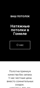| AI-анализ | The website is for a company named "Vash Potolok" specializing in stretch ceilings in the city of Homel, Belarus. The homepage contains information about the company, types of stretch ceilings available such as matte, glossy, and satin finish, and a contact number and address. The description mentions the premium quality of the materials used, absence of smell, and honest pricing without discounts. The website offers three types of stretch ceilings, each with its distinct visual appeal: matte for a look similar to a painted traditional ceiling, glossy for an illusion of increased space and a mirror-like effect, and satin for a more subtle, smooth finish. The company boasts a high customer satisfaction rate, with over 96% of clients returning and recommending the service to others. |
