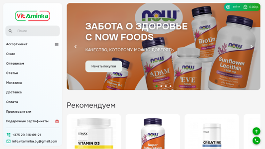 | AI-анализ | --- The website Vitaminka is an online health and sports nutrition store. It offers a wide range of dietary supplements with a guarantee of quality and certifications. Delivery is available in Minsk and Belarus. The assortment includes various vitamins, minerals, and sports nutrition products. Users can find and purchase over 140 items in categories such as vitamins, minerals, sports nutrition, and healthy food. The store also carries FitMax brand products and offers a complex support system for various formulas including chondroitin, glucosamine, collagen, and MSM. Notable new items include FitMax D-3, Now Foods Super Antioxidants, FitMax Creatine, and Extreme Diet Supps Red Devil. The store stocks over 1,400 items from more than 100 quality brands. |