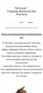 | AI-анализ | The portal bezglutena.by is a gluten-free bakery website. It offers various gluten-free baked goods such as motena, zefir, zefirnye bukety, bentorty, torty, kapkejki, and pirozhny. The website states that all their baked goods are made using only high-quality products, including real butter and chocolate, and gluten-free flour with potential traces of gluten. The website also includes an Instagram account for more detailed information about their offerings and prices. The bakery is located in Minsk, Belarus, and offers self-pickup or delivery through Yandex Delivery. |