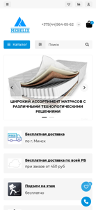 | AI-анализ | This online resource is a mattress store based in Minsk, Belarus, named Mebelix.By. The website offers a wide selection of mattresses with various technological solutions. Customers can choose from different levels of firmness, including soft, medium, and firm mattresses. The materials used in the production of these mattresses include latex, memory foam, coconut, and many others. The store's products are known for their high quality, comfortable sleep experience, and support for proper posture, ensuring a complete rest. Mebelix.By provides free delivery within Minsk and free installation, removal of old mattresses, and lifting to upper floors. The store's product range includes mattresses from Vegas, Askona, and ЭОС brands, as well as protective mattress toppers and foundations. Additionally, the website offers pillows and blankets. |
