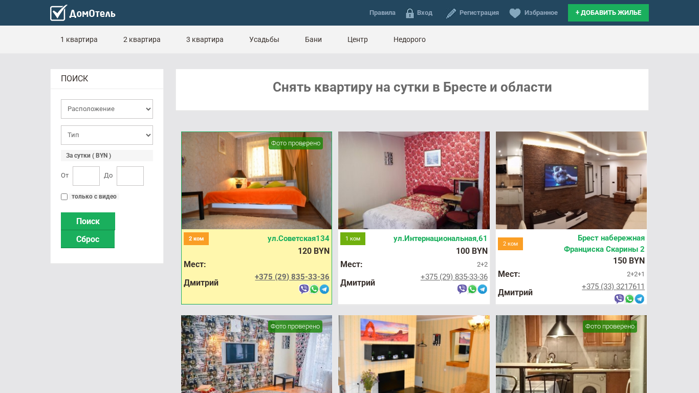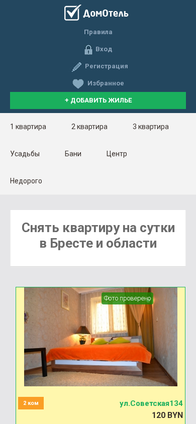 | SEO-описание | Снять квартиру на сутки в Бресте. Квартира от владельцев в Бресте недорого. Отличные условия для временного проживания. Наличный и безналичный расчёт. Звоните. |