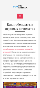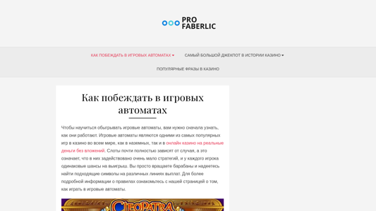 | AI-анализ | The web project "Как побеждать в игровых автоматах" on pro-faberlic.by is about teaching players how slot machines work. Slot machines are among the most popular games in casinos around the world, both in land-based and online casinos with real money without investments. Slots are almost entirely dependent on chance, meaning that each player has equal chances of winning. Players simply spin the reels and hope to find matching symbols on various paylines. For more detailed information on game rules, please refer to our page on how to play slot machines. Slots with the Best Odds Although it may not be possible to use strategies to increase chances of profits, players' odds of winning can vary significantly depending on the games they choose to play. To increase chances of payouts, it's recommended to play slots with low volatility. Low volatility means the slot pays out smaller amounts |