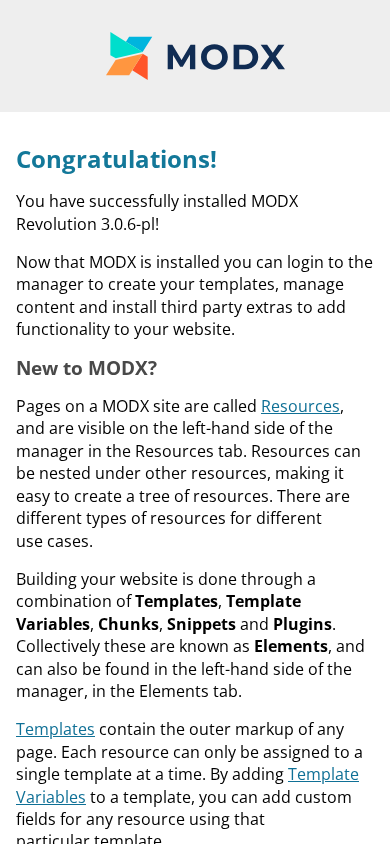| AI-анализ | This online resource is an introduction and guide for users of the MODX Revolution content management system (CMS) version 3.0.6-pl. It provides information on how to use the system to create and manage templates, content, and install third-party extras to enhance website functionality. The website uses the MODX terminology, explaining that resources, which are pages on a MODX site, can be nested under other resources and managed through the manager, accessible via the Resources tab. The site also introduces the concept of elements, which include templates, template variables, chunks, snippets, and plugins, all of which can be found and managed in the Elements tab. The website also provides links to the official MODX documentation, blog, and forums for further learning. The domain is registered to iopen.by. |