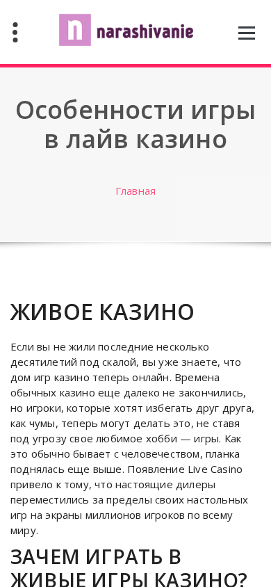 | Название / Заголовок | Особенности игры в лайв казино - Слоты/Казино |