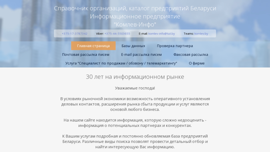 | SEO-лексика | предприятий беларуси рассылка комлев-инфо писем каталог e-mail беларусь данных информация база поиска регистр клиентов справочник почтовая факсовая партнеров новых предприятиям |